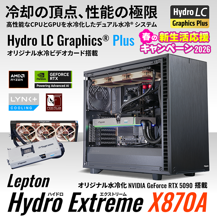 - 冷却性能と静音性のバランスを高次元で両立したデュアル水冷ゲーミングPC。AMD Ryzen 9000シリーズとサイコム独自に水冷化したGeForce RTX5070Tiの組み合わせで快適なゲーミング環境を実現します。(オプションでGeForce RTX5080もご選択いただけます)