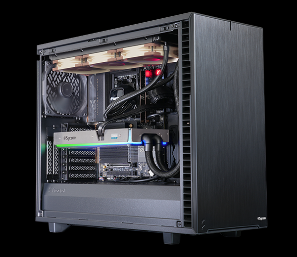 - 水冷化により、騒音源となるCPUクーラーとビデオカードのファンは低回転で維持。ずば抜けた静音性を実現。