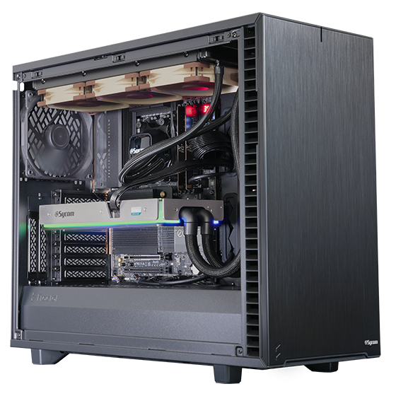 最新のインテル® Core™ Ultra プロセッサー搭載のデュアル水冷システム搭載ワークステーション。冷却性能と静音性のバランスを極限まで突き詰めたサイコムのクラフトマンシップが誇る至高の1台