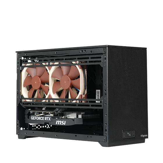 総容量26.1リットルサイズのコンパクト筐体ながら、最新のインテル® Core™ Ultra プロセッサーとGeForce RTX50シリーズを水冷で搭載。省スペースかつ高性能なデュアル水冷システム搭載ワークステーション。