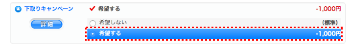 カスタマイズ画面の「下取りキャンペーン」の項目で「希望する」をご選択ください。