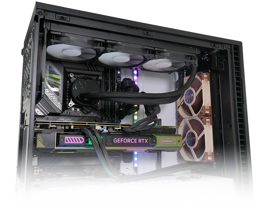 ラジエーターの冷却にはプレミアムな高性能Noctua製12cmファンを2基組み合わせ、大風量と静音性を両立。