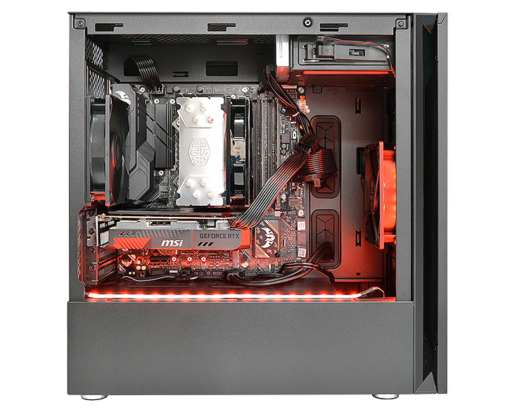 内部の複雑なシステムのノイズを最小限に抑えると同時に、システムを効率的に冷却する、SILENCIOデザインを採用。ソフトで厚みのあるフォーム材から、高密度ビニールまで、特定の周波数を正確に打ち消すために複数の遮音材を組み合わせて使用することで、静音性を高めています。また、シームレス強化ガラスを採用し、ケース内部のイルミネーションを効果的に魅せることができます。