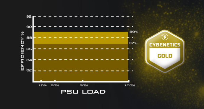 Cybenetics Goldレベルの効率設計で、廃熱を減らし電力を節約します。