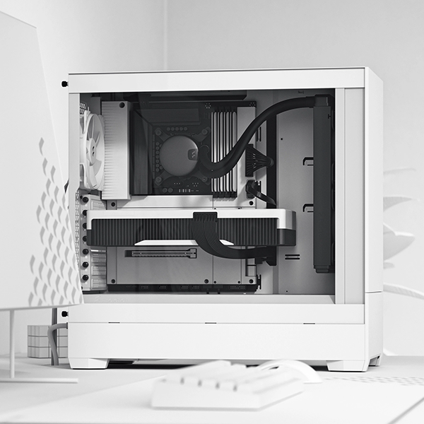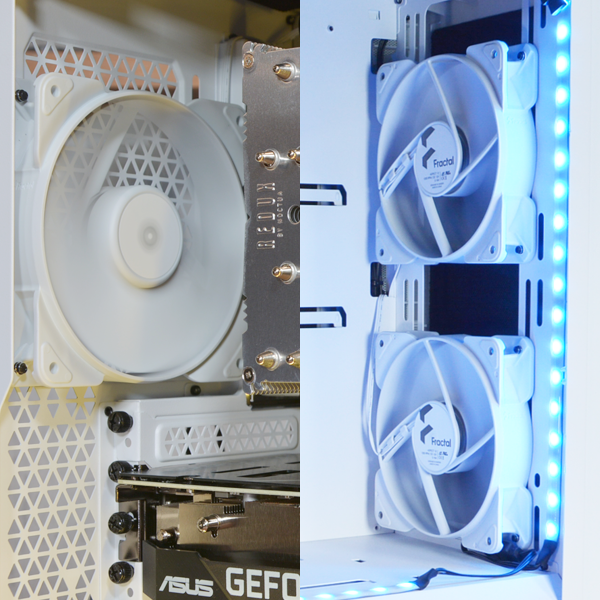 取り付けが容易な強化ガラス製のサイドパネルが内部コンポーネントをあざやかに目立たせます。