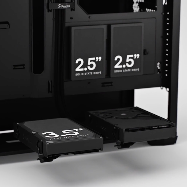非常に汎用性の高い3.5"と2.5”のドライブが同時に収納できるストレージトレイが2台付属。