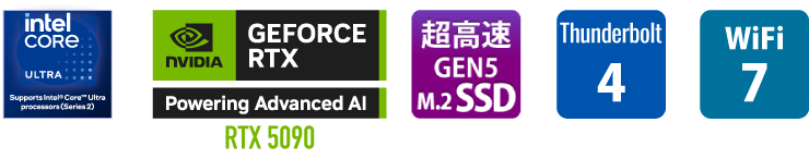 ストレージには高速且つ大容量なCrucial製T700 2TB(テラバイト)SSDを標準搭載。シーケンシャル読み込み・書み込みの速度はそれぞれ最大12,400MB/秒、11,800MB/秒を実現。ゲーム、ビデオ編集、3D レンダリング、および負荷の高いアプリケーションにおいて圧倒的な速度を誇ります。