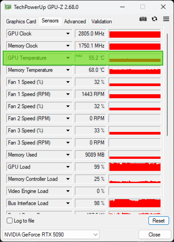 比較検証として市販のGeForce RTX 5090 (A社製)を