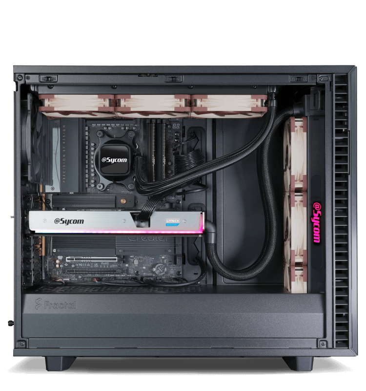 更なるエアフロウ向上の為、サイコム独自で底面にNoctua製14センチファンも増設済み