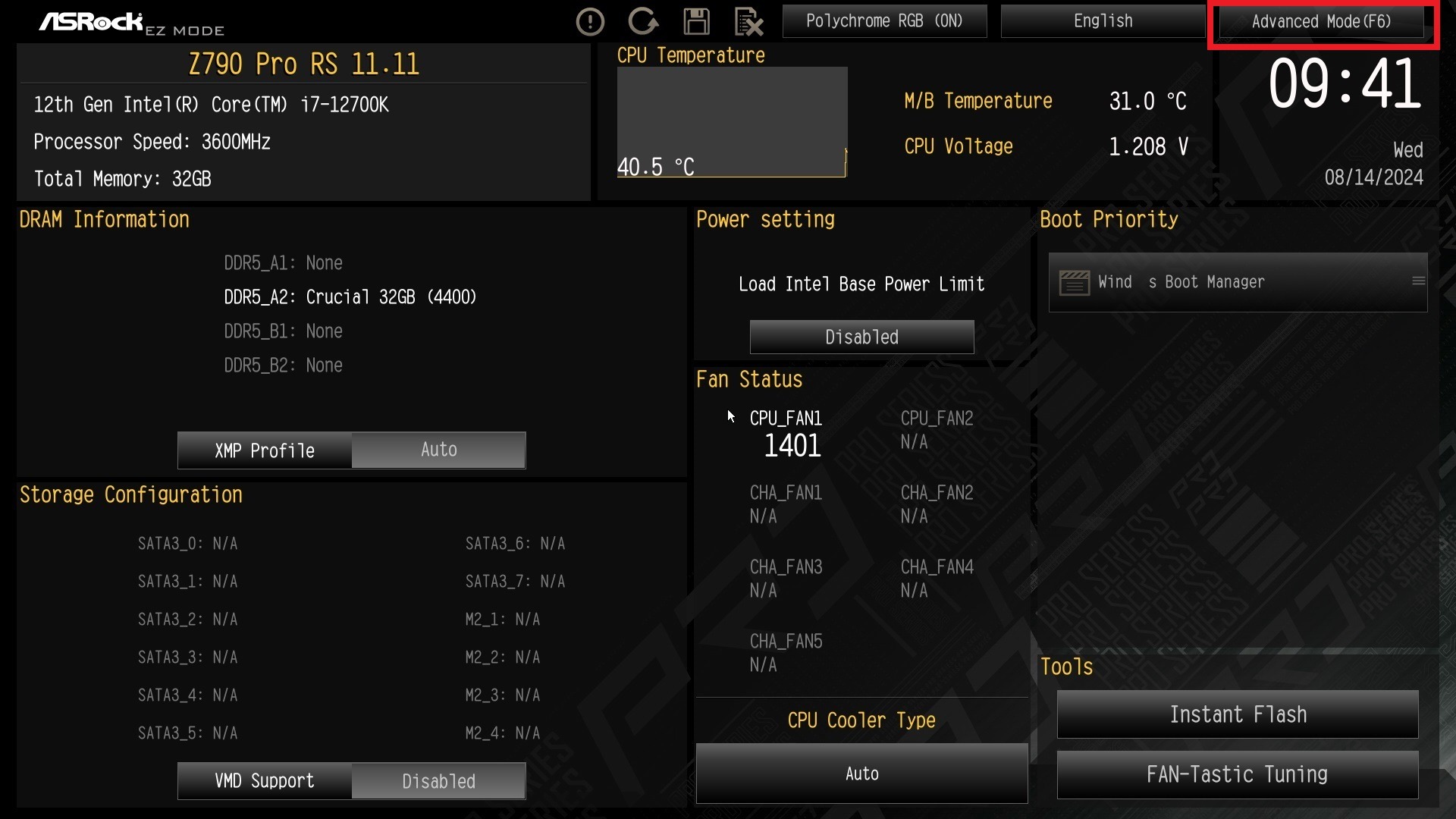 ※マザーボードの種類によっては、[Advanced Mode]のみの場合もあります