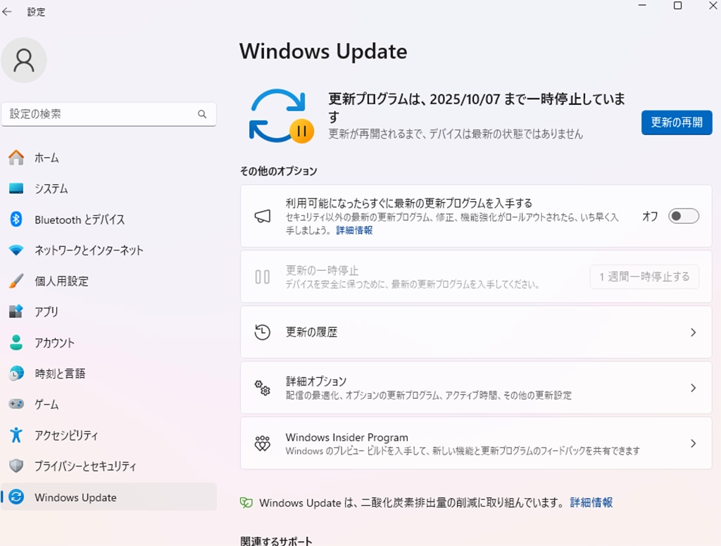 購入直後のパソコンは、出荷時点でのWindowsやドライバーとなるため、そのまま使用すると、パフォーマンスや安定性の面で不具合が生じることがあります。BTOパソコンの場合、即納モデルなど、あらかじめ組み立てられたもの以外は、ほとんど最新状態であることが予想されますが、念の為、「Windows Update」で最新状態にすることをおすすめします。