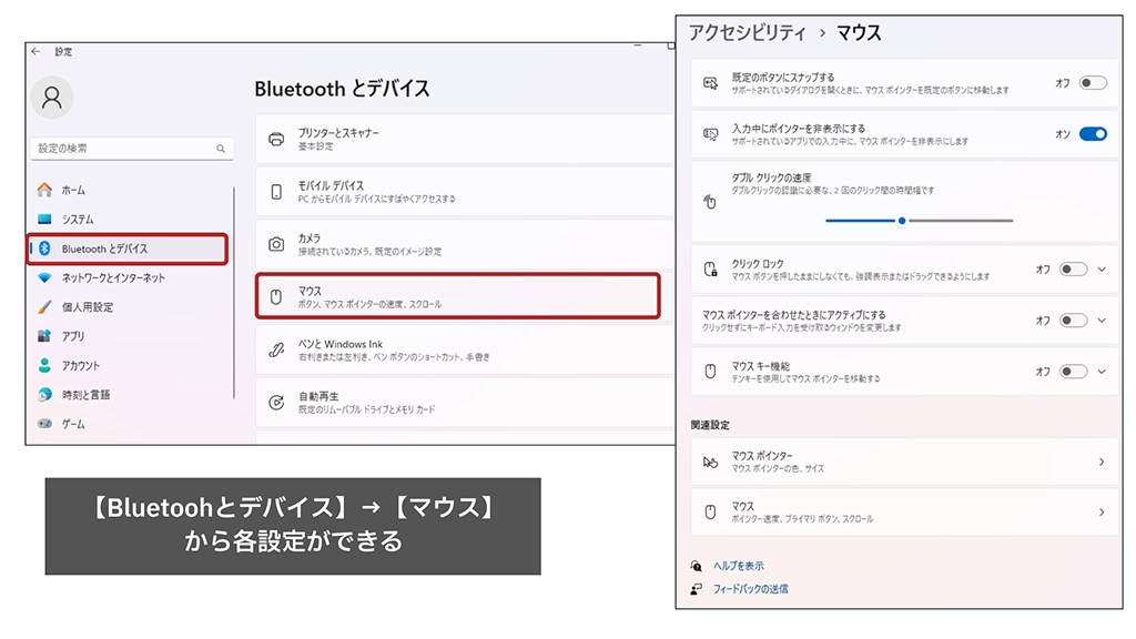 ポインター速度を自分にあった速度に変更。「ポインター精度を高める」は、ゲームによってはチェックを外したほうが安定してポインターを移動させることができます。なお、ゲーミングマウスの場合は、専用の設定ソフトが用意されており、より自分のプレイスタイルに合った細かな設定が可能となっています。