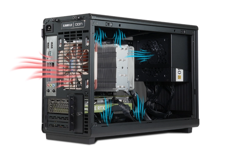ミニPCは、小型ゆえに冷却性能が非常に気になるところ。実際、かつての小型PCは、発熱を防ぐために、性能を抑えることが一般的でした。しかし、現在では、CPUクーラーやPCケースの進化もあり、小型筐体でもしっかりエアフローを確保し、性能を犠牲にすることなく、高水準の冷却性能を実現しています。