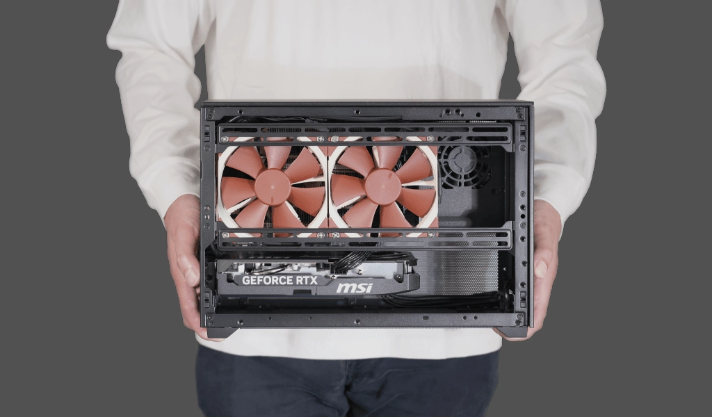 一般的に、筐体サイズを小型化すると、冷却性能や拡張性、カスタマイズ性などでの問題点が浮き上がりますが、メーカー独自の工夫により、そういったデメリットを払拭。小型でありながらもビデオカードを搭載するなど、ゲーミングやクリエイティブな用途にも十二分に対応可能となっています。