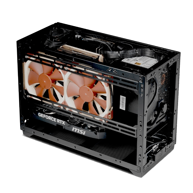 無駄を削ぎ落としたフルメッシュデザインのPCケースによる卓越したエアフローによって、高い冷却性能を発揮。CPUクーラーを水冷ユニットに変更すれば、さらに長時間の安定駆動にも貢献します。