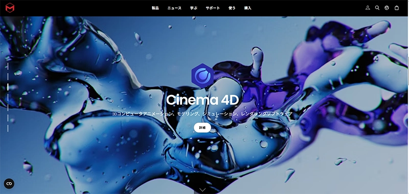 ドイツのMAXON Computer社が開発した、3DCG制作の全工程を1つのソフトで完結できる統合型3DCG制作ソフトウェアです。直感的な操作性が魅力となっており、初心者でも短期間で基本を習得できる一方、柔軟性も高く、上級者向けの高度な機能も備えており、特にモーショングラフィックスに強いと評価されています。