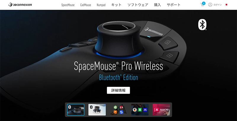 3D空間の回転、ズーム、パン操作が直感的に行える「3Dマウス」を使用すれば、普通のマウスだけで作業するよりも操作速度が大幅に向上。移動や回転、拡大縮小を同時に行えることが大きな特徴となります。