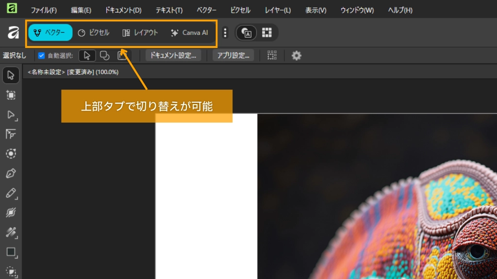 しかし、2024年3月のCanvaによるSerif買収によって再編され、2025年に3製品の機能を「Affinity 3.0」として統合。オールインワンのクリエイティブソフトとして無償提供されるようになり、現在はCanva傘下の「Affinity by Canva」(以下、「Affinity」)として展開されています。