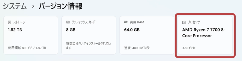| CPU | AMD Ryzen 7 9700X (3.8GHz、8コア/16スレッド) |